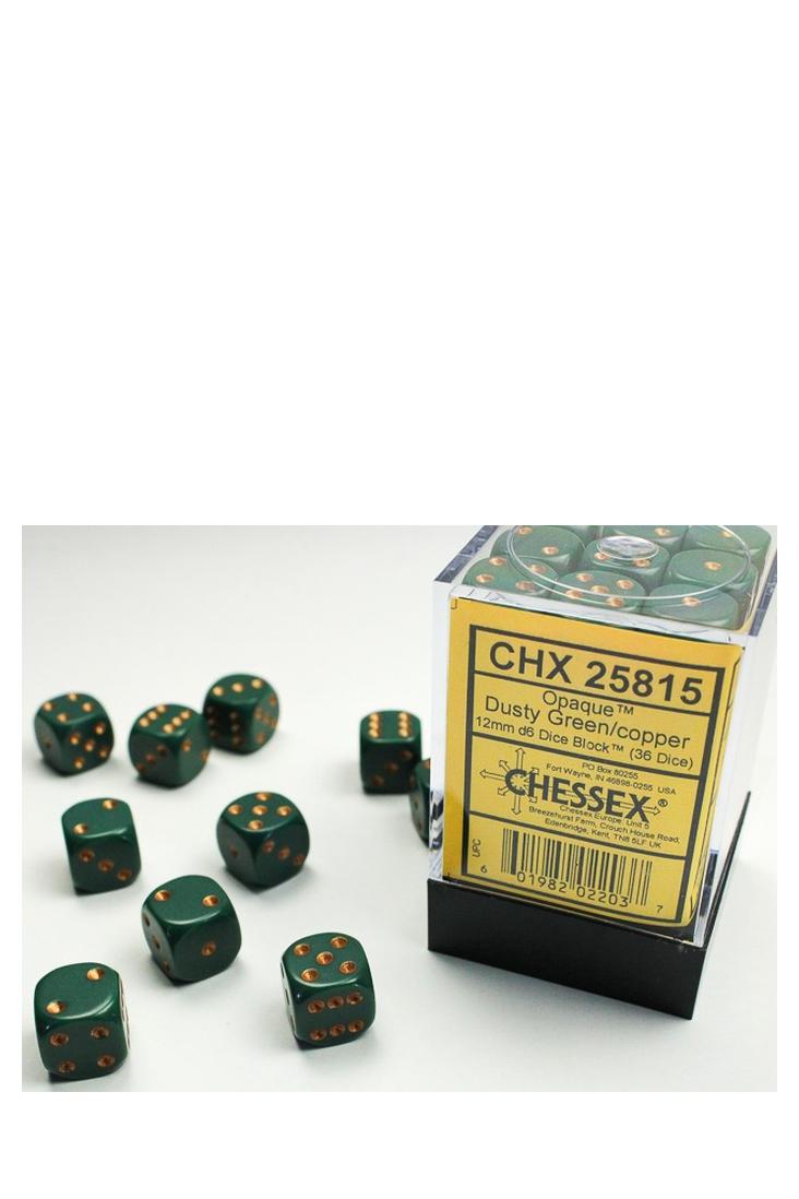 Produktspezifikationen zu 36er-Pack 12mm D6 Würfel - Dusty Green / Copper von Chessex: