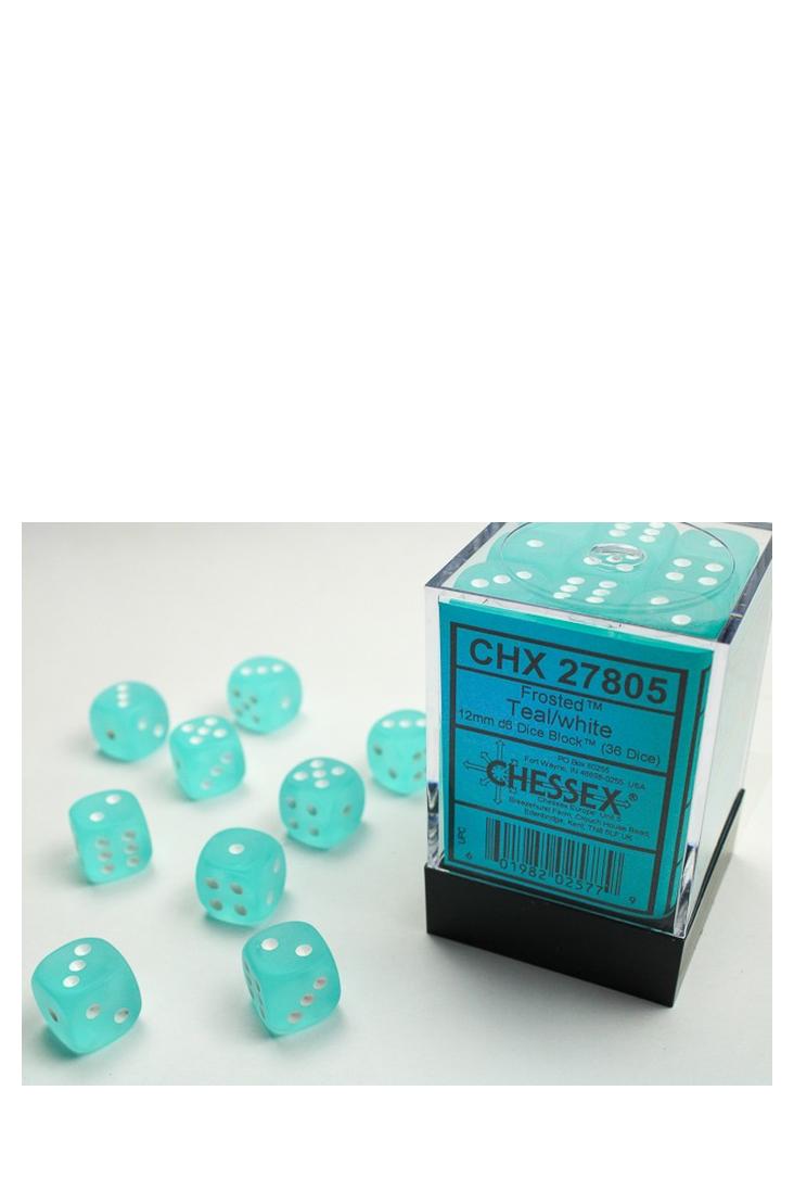 Produktspezifikationen zu 36er-Pack 12mm D6 Würfel - Frosted Teal / White von Chessex: