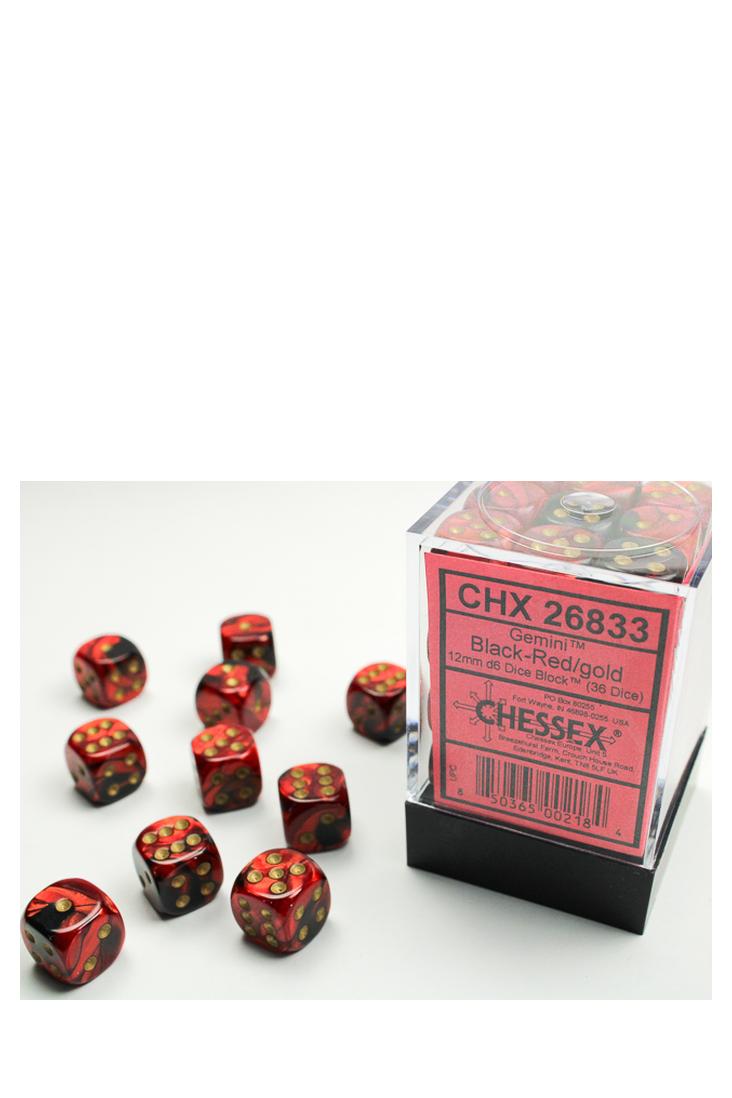 Produktspezifikationen zu 36er-Pack 12mm D6 Würfel - Gemini Black-Red / Gold von Chessex: