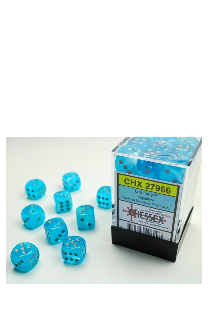 Produktspezifikationen zu 36er-Pack 12mm D6 Würfel - Luminary Sky / Silver von Chessex:
