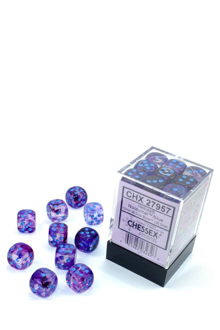 Produktspezifikationen zu 36er-Pack 12mm D6 Würfel - Nebula Nocturnal / Blue (Luminary) von Chessex: