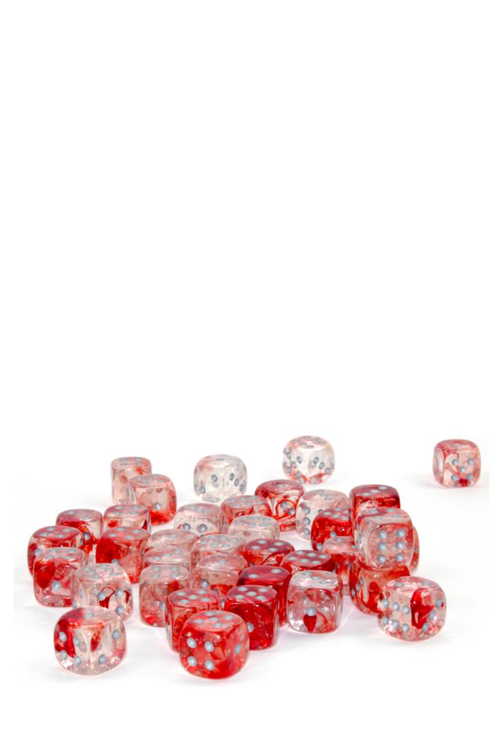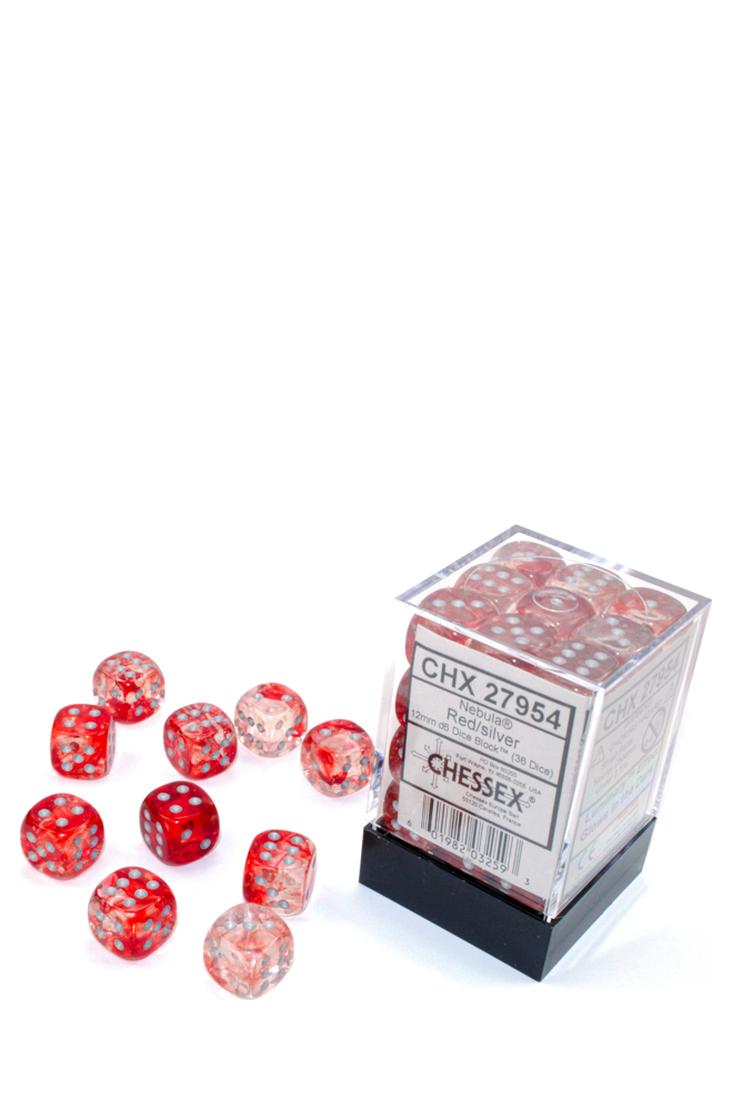 Produktspezifikationen zu 36er-Pack 12mm D6 Würfel - Nebula Red / Silver (Luminary) von Chessex: