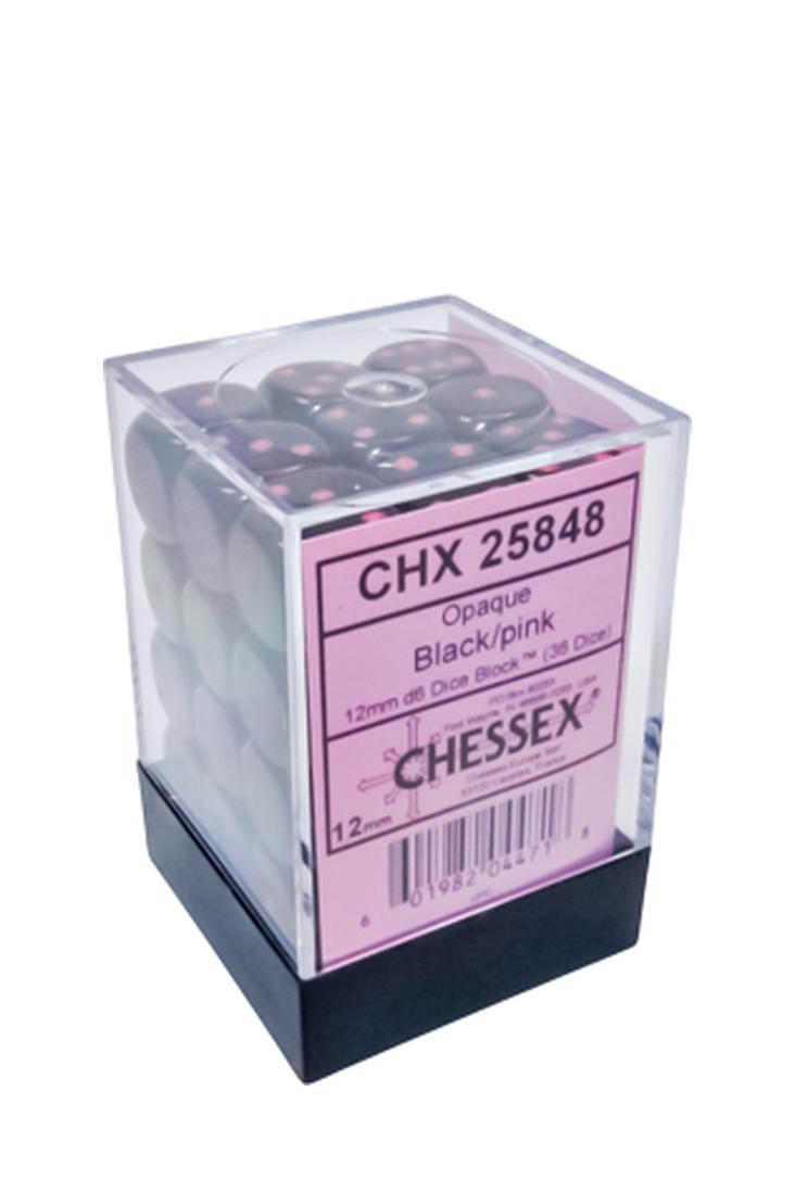 Produktspezifikationen zu 36er-Pack 12mm D6 Würfel - Schwarz / Pink von Chessex: