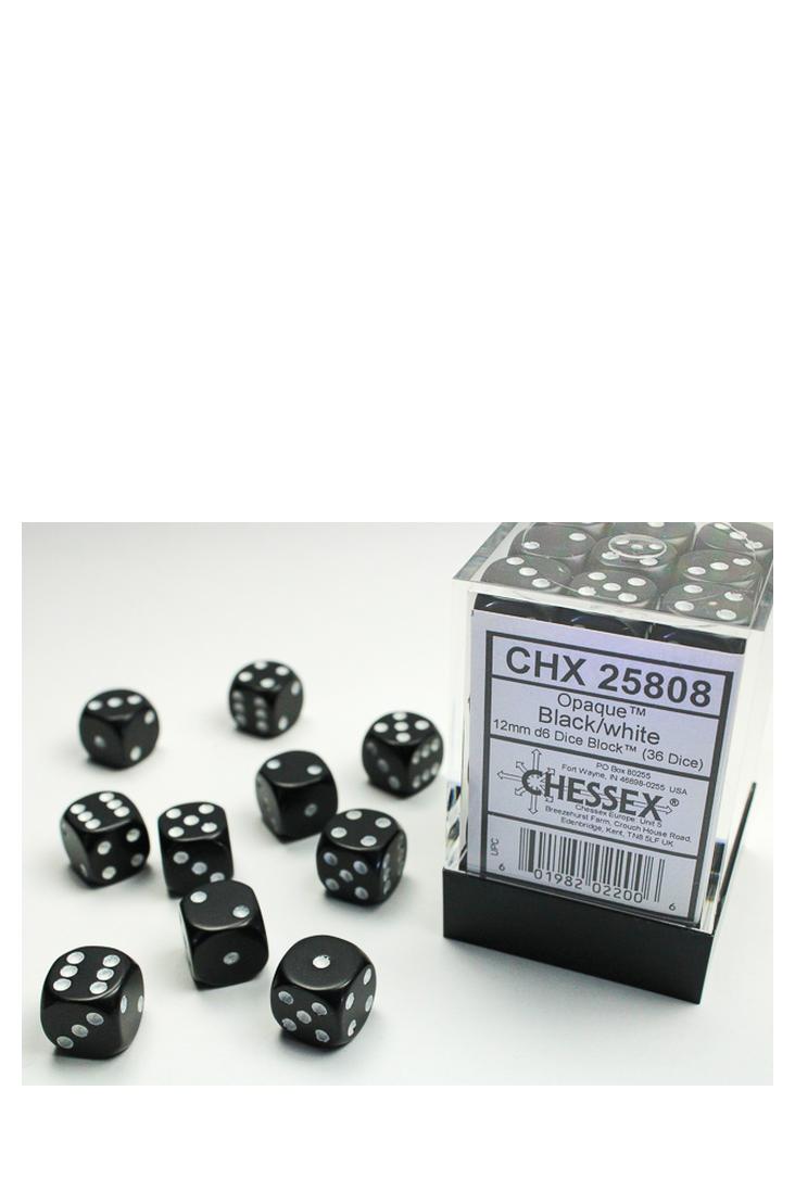 Produktspezifikationen zu 36er-Pack 12mm D6 Würfel - Schwarz / Weiss von Chessex: