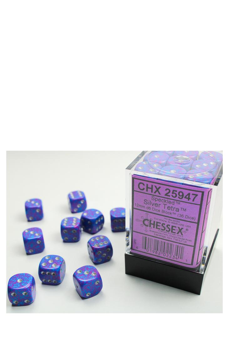 Produktspezifikationen zu 36er-Pack 12mm D6 Würfel - Speckled Silver Tetra von Chessex: