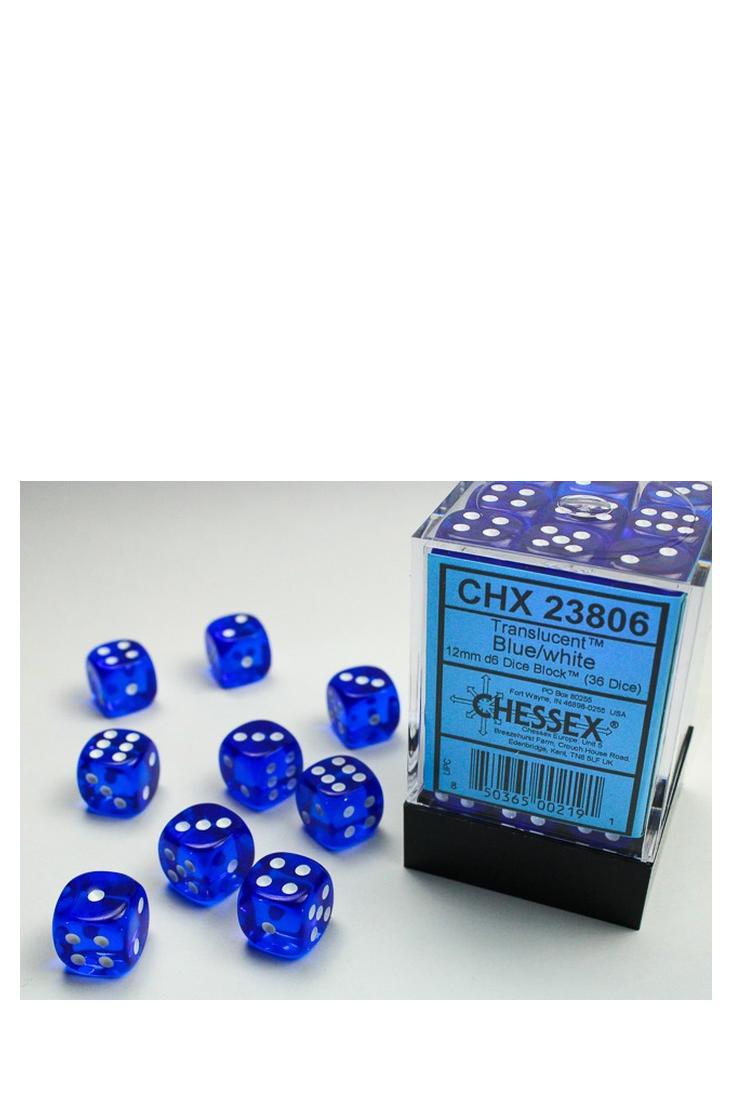 Produktspezifikationen zu 36er-Pack 12mm D6 Würfel - Translucent Blue / White von Chessex: