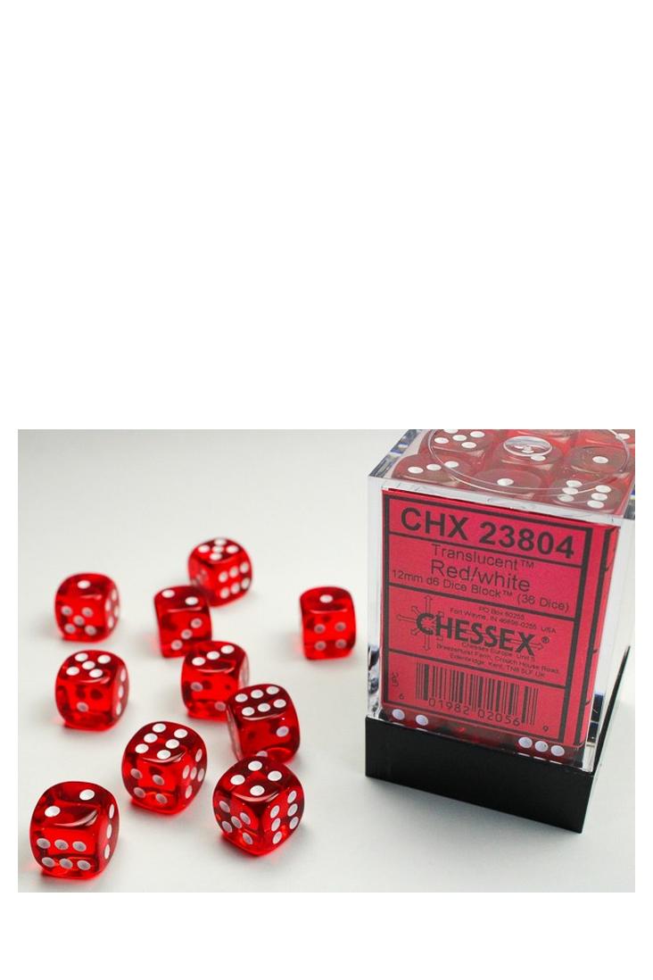 Produktspezifikationen zu 36er-Pack 12mm D6 Würfel - Translucent Red / White von Chessex: