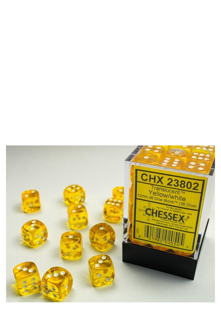 Produktspezifikationen zu 36er-Pack 12mm D6 Würfel - Translucent Yellow / White von Chessex: