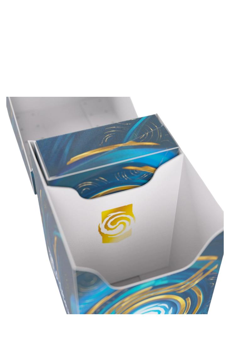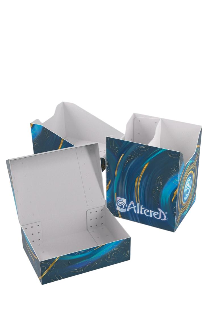 Die Expedition Soft Box ist mit Gamegenics eigener Cobra Neck-Technologie ausgestattet: Der Deckel kann mehr als 180° geöffnet werden, um einfachen Zugriff zu ermöglichen. Ausserdem verfügt sie über einen selbstverriegelnden Deckel und ein Beschriftungsfeld. Der Trenner im Inneren sorgt dafür, dass das Deck an seinem Platz bleibt, auch wenn die Token-Box herausgenommen wird. Die Altered Expedition Soft Box ist in zwei lebhaften Designs aus dem Spiel erhältlich und ein Muss für alle Altered, TCG- und LCG-Spieler.