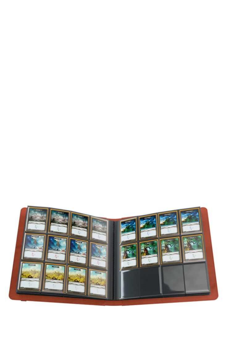 Die in Reihen zu je vier Fächern unterteilten Seiten sind ideal für Playsets (jeweils 4 Karten) geeignet. Mit dem extra breiten Gummiband in passender Farbe lässt sich dieses Album sicher verschliessen.