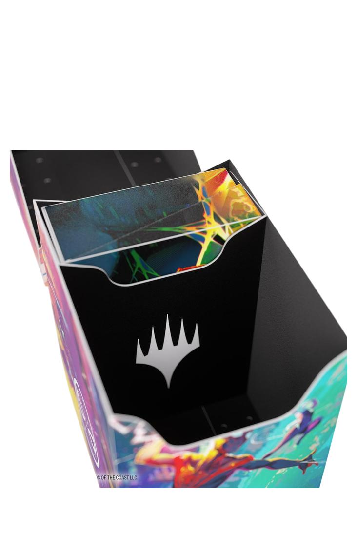 Die Soft Crate ist eine robuste All-in-One-Lösung: das erste 2-in-1-Produkt, das eine Deckbox in Standardgrösse mit einer integrierten Token-Box kombiniert. Diese vollfarbig bedruckte Deckbox bietet raffinierte Funktionalität und cleveres Design. Sie fasst bis zu 80 doppelt gesleevte Karten in Standardgrösse sowie Platz für Token und Sideboard. Alternativ bietet sie Platz für bis zu 100 einzeln gesleevte Karten. Die zusätzlich enthaltene Token-Box hat Platz für Würfel, Spielsteine und anderes kleines Zubehör. Ausgestattet mit einem einzigartigen, cleveren Klickverschlussmechanismus hält die Token-Box alles sicher verstaut. Nach dem Öffnen bleibt der Deckel aufrecht stehen und ermöglicht so schnellen und einfachen Zugriff während des Spiels.
