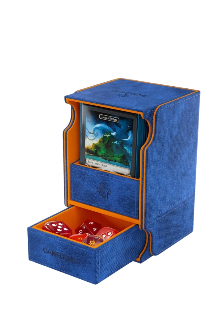 Diese extra grosse Variante des Watchtower 100+ fasst 100 herkömmliche, doppelt gesleevte Karten und bietet ausserdem ausreichend Raum für zusätzliche Tokens. Alternativ findet aber auch ein Commander-Deck in dickeren Innen Sleeves perfekt Platz darin. Die Zubehörschublade ist zudem perfekt zur Aufbewahrung von Würfeln, Zählern und anderen kleinen Spielgegenständen geeignet.