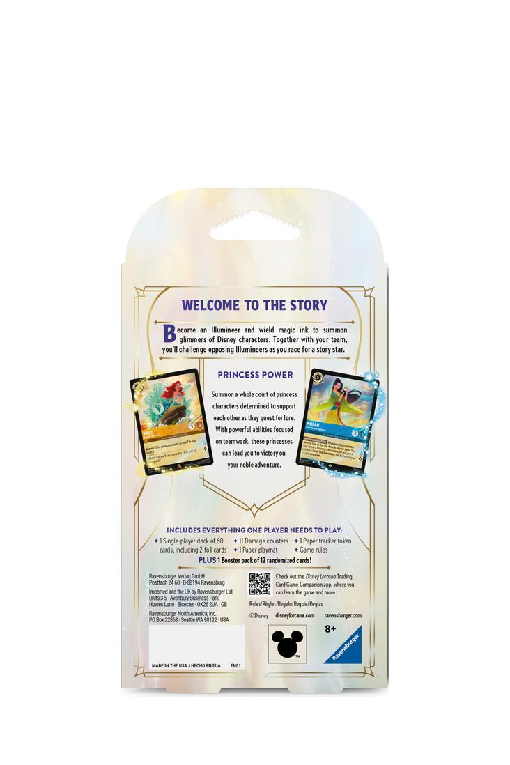 Um Disney Lorcana zu spielen, benötigen alle Mitspielenden ein Deck mit sechzig Karten. Starter Decks enthalten ein vorgefertigtes Deck mit einem festgelegten Kartensatz. Wenn du noch nicht damit vertraut bist, dein eigenes Deck zu bauen, ist das ausgewogene und vom Lorcana Team getestete Starter Deck die ideale Basis.