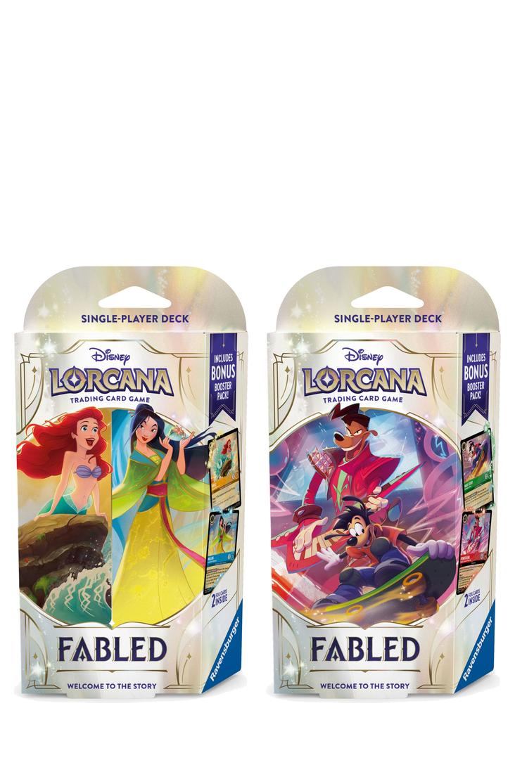 Die Geschichten, die Disney erzählt, tragen eine besondere Kraft in sich. Willkommen in Disney Lorcana - einer Welt, in der magische Geschichten zum Leben erwachen. Egal, ob Du das Spiel zum ersten Mal spielst oder zurückkehrst, um Dich mit ein paar neuen Freundinnnen und Freunden zusammenzutun – in Mythen (Fabled) ist für alle etwas dabei!