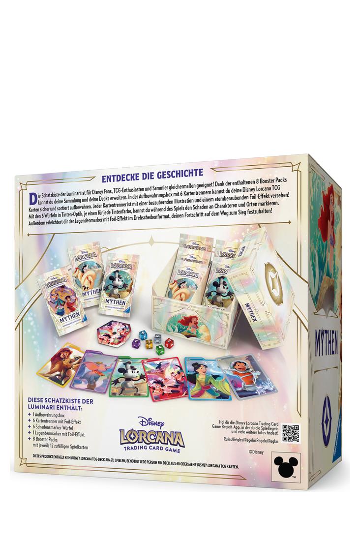 Die Geschichten, die Disney erzählt, tragen eine besondere Kraft in sich. Willkommen in Disney Lorcana - einer Welt, in der magische Geschichten zum Leben erwachen. Egal, ob Du das Spiel zum ersten Mal spielst oder zurückkehrst, um Dich mit ein paar neuen Freundinnnen und Freunden zusammenzutun – in Mythen (Fabled) ist für alle etwas dabei!