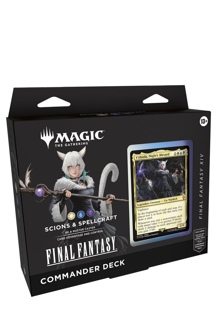 In Commander kommen vier Spielende zusammen, um ihre Stärke und Strategie unter Beweis zu stellen, wobei am Ende eine oder einer die Nase vorn hat. Jedes spielfertige Magic: The Gathering – FINAL FANTASY Commander-Deck mit 100 Karten macht es Commander-Fans leicht, sich ein Deck zu schnappen und sofort loszuspielen.