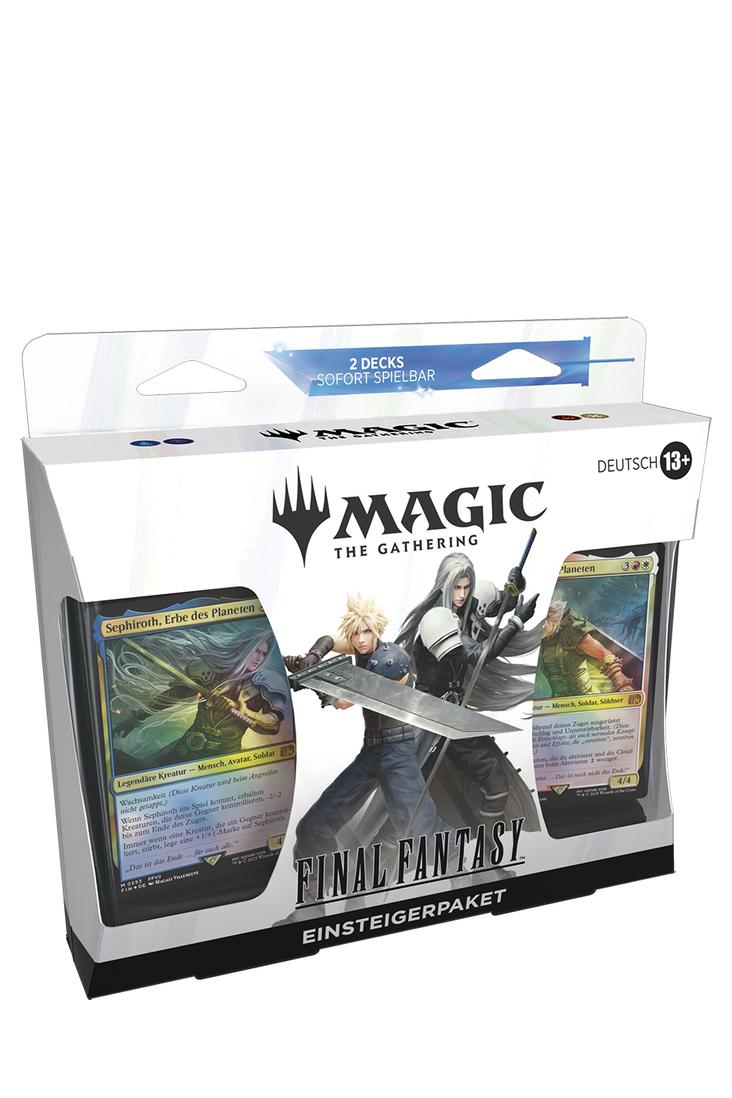 Mit zwei spielfertigen Decks mit 60 Karten führt das Einsteigerpaket neue Spielende durch ihre erste Magic-Partie und erlaubt ihnen gleichzeitig, Charaktere und Momente aus verschiedenen FINAL FANTASY Spielen aus erster Hand zu erleben.