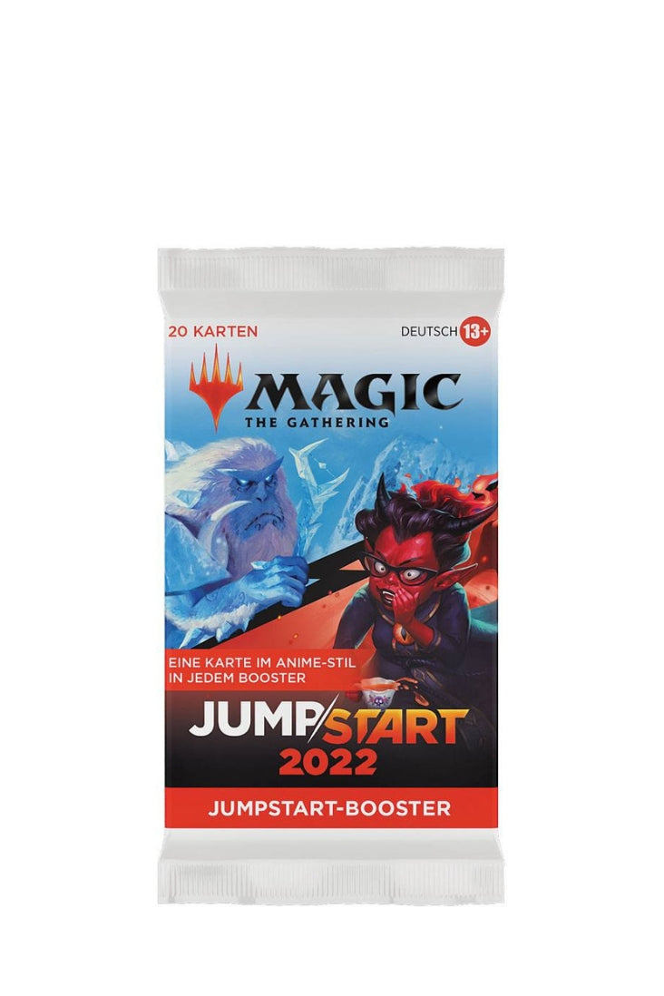 Jedes Jumpstart 2022 Booster enthält 1 Beilage, die das Thema des Boosters anzeigt, und 20 Magic-Karten, die sich um dieses Thema drehen, darunter 1 Karte mit von Anime inspirierter Illustration, insgesamt 1-2 Karten der Seltenheit Rare oder Mythic und alle zum Spielen benötigten Länder. Um mit noch wilderen Themenkombinationen zu spielen, können die Jumpstart 2022 Booster mit Packungen aus anderen Jumpstart-Produkten kombiniert werden.