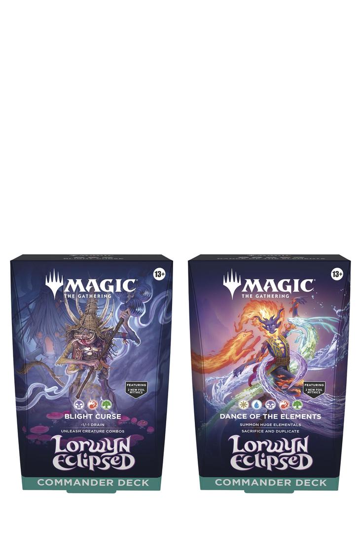Commander-Decks sind direkt aus der Packung spielfertig und enthalten alles, was du brauchst, um das beliebteste Multiplayer-Format von Magic zu spielen. In Lorwyns Finsternis gibt es zwei verschiedene Commander-Decks.