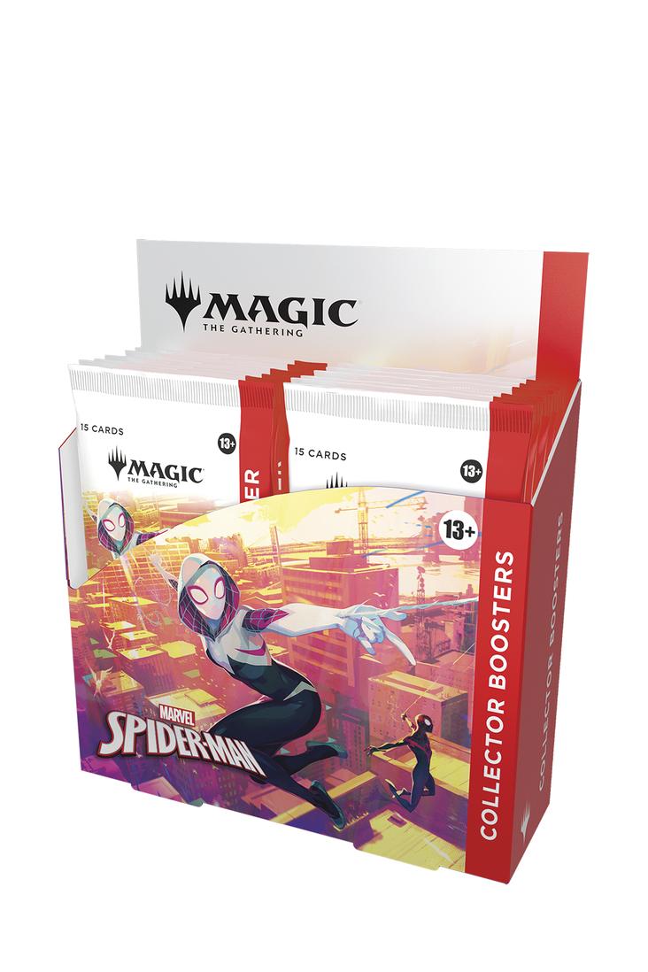 Sammler-Booster vereinen all die coolsten Karten und Foil-Kartendrucke in sich! Jedes Booster enthält Rare und/oder Mythic Karten, Traditionelle Foilkarten, ein Standardland ohne Rand und mehr. Netzschleudernde Held*innen treffen vielleicht sogar auf noch mehr wunderschöne Foilkarten und bildhübsche Länder. Vielleicht findest du sogar die Headliner-Karte – das Kronjuwel jeder Sammlung!