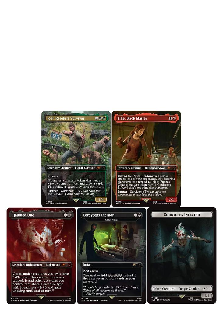 HINWEIS: Die „Survivors“-Partner-Mechanik ermöglicht es, die Joel- und Ellie-Karten aus Secret Lair x The Last of Us Part I zusammen mit den Abby- und Ellie-Karten aus Secret Lair x The Last of Us Part II zu spielen. Das bedeutet, dass Ellie Partner ihres jüngeren Selbst sein kann (und Abby Partner von Joel, wenn du ein totales Monster bist).