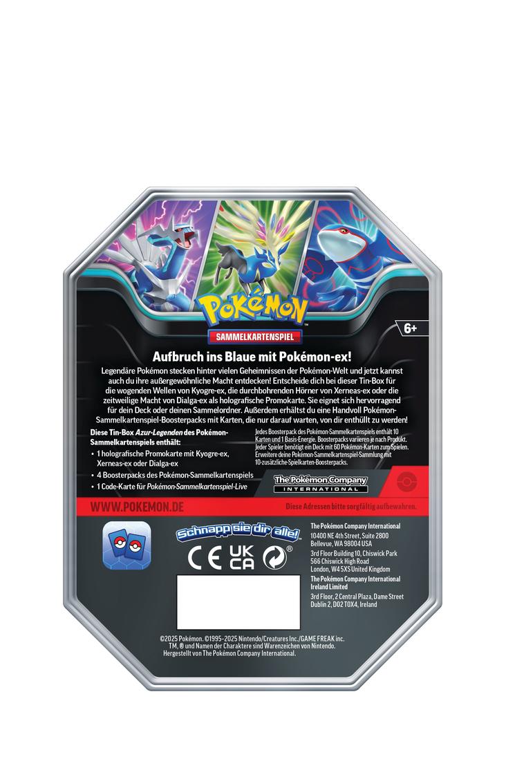 Entscheide dich in dieser Tin-Box für die wogenden Wellen von Kyogre-ex, die durchbohrenden Hörner von Xerneas-ex oder die zeitweilige Macht von Dialga-ex als holografische Promokarte. Sie ist perfekt für dein Deck oder deinen Sammelordner.