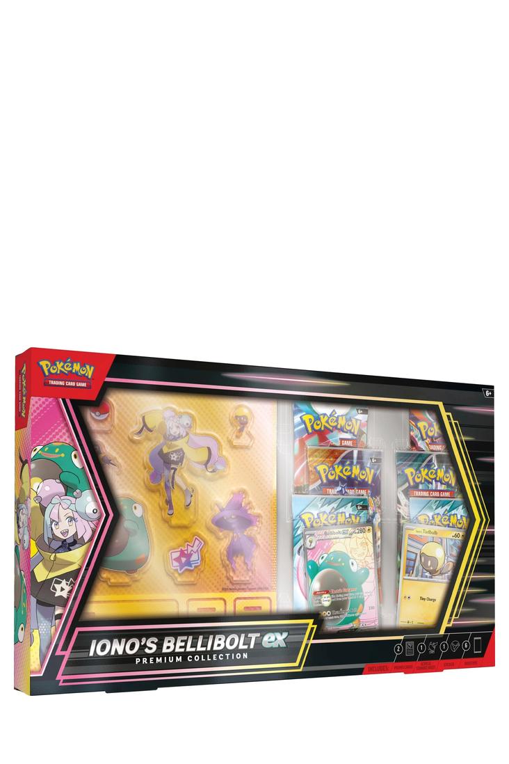 Enigmara (Iono), die Arenaleiterin von Fermanca City, und ihr Partner-Pokémon Wampitz (Bellibolt) sind ein unzertrennliches Team voller Energie! Mit dieser Kollektion kannst du Enigmaras Wampitz-ex und seine Fähigkeit Elektro-Streaming nutzen, um den Rest deiner Enigmaras Pokémon mit der nötigen Energie auf Hochspannung zu bringen.