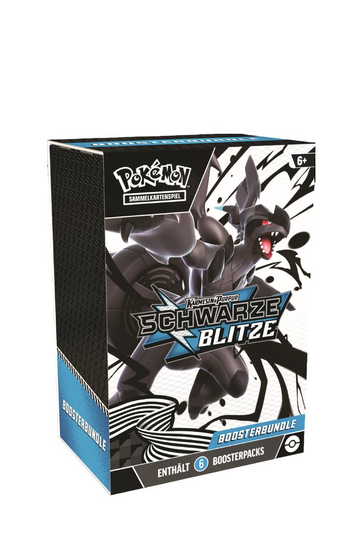 Erweitere deine Sammlung mit einem Boosterbundle, das sechs Boosterpacks der Pokémon-Sammelkartenspiel-Erweiterung Karmesin & Purpur – Schwarze Blitze (Black Bolt) enthält.