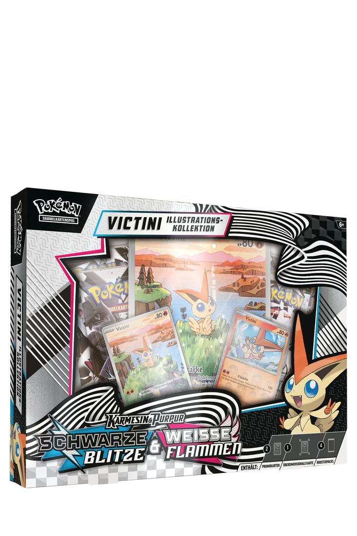 Das Mysteriöse Pokémon Victini erzeugt grenzenlose Energie, die es mit seinen Freunden teilt. Jetzt kannst du mit Victini in deinen eigenen Pokémon-Sammelkartenspiel-Decks antreten! In dieser Kollektion erhältst du eine holografische Promokarte im Stil einer Rare Illustrationskarte sowie eine holografische Premium-Parallelkarte mit Victini zusammen mit einer überdimensionalen Karte zum Ausstellen. Finde noch mehr Pokémon aus der Einall-Region (Unova) in den enthaltenen Boostern der besonderen Erweiterungen Karmesin & Purpur - Schwarze Blitze (Black Bolt) und Karmesin & Purpur - Weisse Flammen (White Flare).