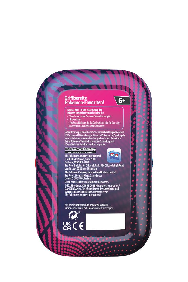 Füge deiner Pokémon-Sammelkartenspiel-Sammlung noch mehr Karten hinzu und erhalte mit jeder schönen Mini-Tin-Box ein tolles Sammlerstück. Es gibt insgesamt fünf Mini-Tin-Box-Designs und jede Mini-Tin-Box hat ihre eigene Illustration, sodass alle zusammen zu einem grossen Bild kombiniert werden können. Jede Mini-Tin-Box enthält zwei Boosterpacks des Pokémon-Sammelkartenspiels, einen Stickerbogen und eine Pokémon-Vollbildkarte mit der Illustration der Tin-Box. Wähle deinen Favoriten oder sammle sie alle – egal, wie du dich entscheidest, mit diesen Mini-Tin-Boxen hast du deine Pokémon-Lieblinge immer griffbereit.