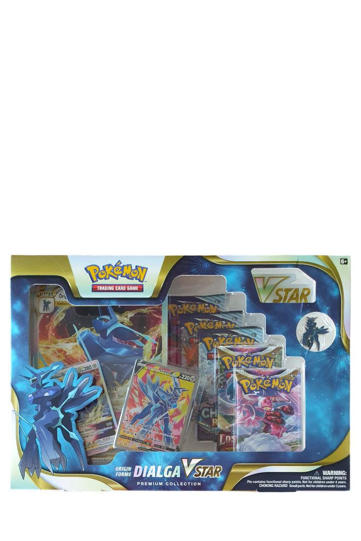 Origin Forme Dialga-VSTARs gewaltige Stärke kann die Zeit nach seinem Willen krümmen und dir einen Vorteil im Kampf verschaffen! Dieses uralte Legendäre Pokémon, das hier in einer spielbaren und einer überdimensionalen Version erscheint, verfügt über eine VSTAR-Power, mit der du zwei Züge hintereinander durchführen kannst. Du kannst es mithilfe von Origin Forme Dialga-V und weiteren Karten, die du in Boosterpacks des Pokémon-Sammelkartenspiels findest, ins Spiel bringen. Und um diese hochwertige Kollektion abzurunden, zeigt ein Pin das Zeitweilig-Pokémon in seiner ganzen Pracht