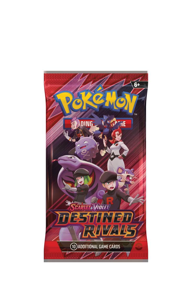 Sei auf der Hut, Trainer! Das schurkische Team Rocket setzt seinen neuesten Plan in Bewegung und tapfere Trainer eilen herbei, um ihn zu vereiteln. Verbünde dich mit Cynthia und Knakrack-ex (Garchomp ex), Klarin und Ho-Oh-ex oder Pepper und Mastifioso-ex (Mabosstiff ex)... Vielleicht erklärst du ja auch deine Loyalität für Giovanni und kämpfst unter seinem Befehl neben Team Rockets Pokémon wie Mewtu-ex (Mewtwo ex)! Entscheide dich für eine Seite, trommle deine Verbündeten zusammen und stürze dich in der Pokémon-Sammelkartenspiel-Erweiterung Karmesin & Purpur - Ewige Rivalen (Scarlet & Violet - Destined Rivals) kühn in den Kampf!