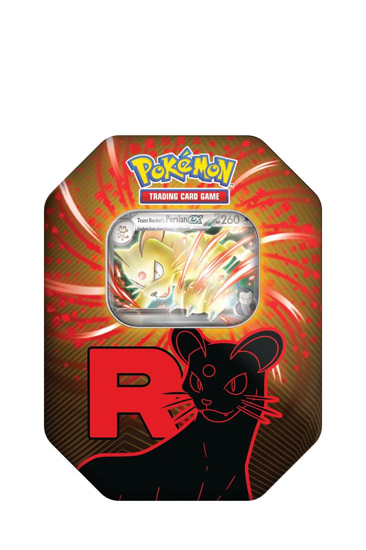 Verwirkliche deine ehrgeizigen Pläne, indem du dich mit einigen der stärksten Pokémon von Team Rocket verbündest! Entscheide dich bei dieser Tin-Box für den strategischen Scharfsinn von Team Rockets Mewtu-ex, die wirksamen Gifte von Team Rockets Nidoking-ex oder die stolze Stärke von Team Rockets Snobilikat-ex als holografische Promokarte. Entdecke anschliessend mehr Pokémon und Trainerkarten in einer Handvoll Boosterpacks.