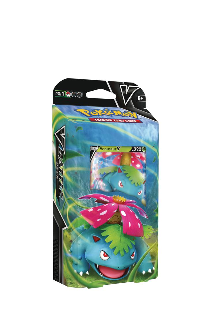 Mithilfe der V-Kampfdecks des Pokémon-Sammelkartenspiels kannst du mit mächtigen Pokémon-V an deiner Seite in den Kampf ziehen. Das 60-Karten-Deck wird entweder von Bisaflor-V (Venusaur V) oder Turtok-V (Blastoise V) angeführt, und das Set enthält alles, um sofort mit dem Spielen loszulegen.