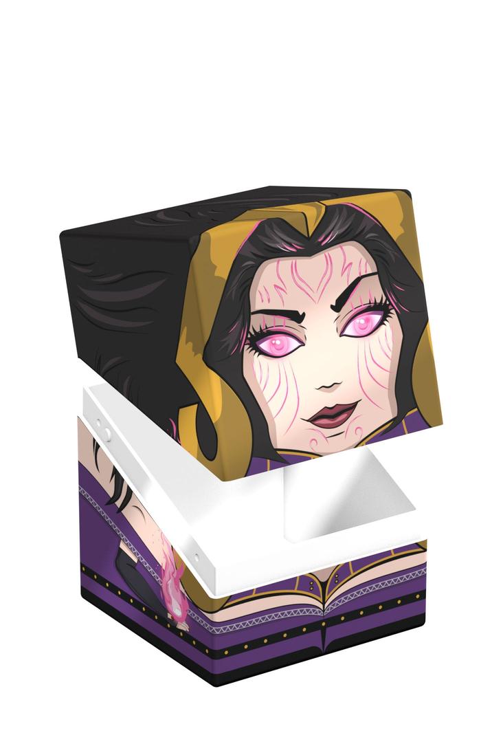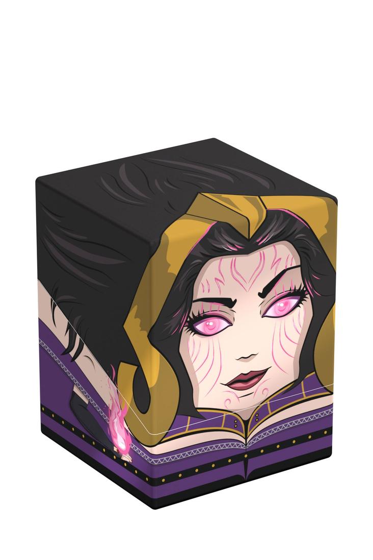Sammelbare Box zur Aufbewahrung deines Decks, von Tabletop-Zubehör und/oder Sammlerstücken. Der Liliana Squaroe aus der Magic: The Gathering-Edition bietet als Deck-Box Platz für bis zu 100 Spielkarten in doppelter Schutzhülle. Squaroes werden aus 78% erneuerbaren Rohstoffen hergestellt.