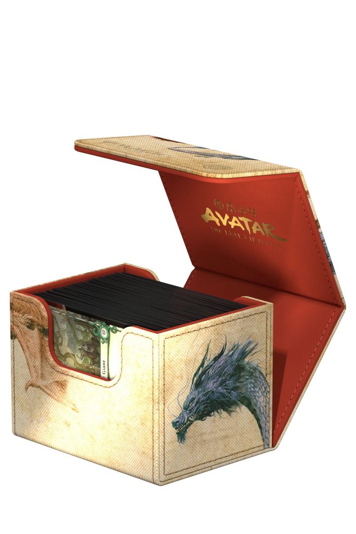 Der Sidewinder 100+ aus widerstandsfähigem Xenoskin-Material fasst bis zu 100 doppelt gesleevte Karten, die dank eines starken Magnetverschlusses und der schonenden Mikrofaser-Innenseite sicher in der Deckbox aufgehoben sind. Die hochwertige Xenoskin-Oberfläche des Sidewinders ist vollfarbig mit offiziell lizenzierten Artworks aus dem Magic: The Gathering | Avatar: The Last Airbender-Set bedruckt.