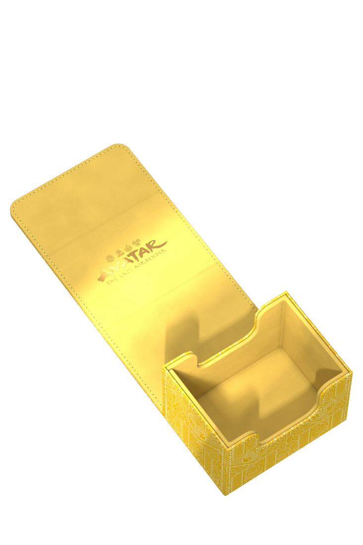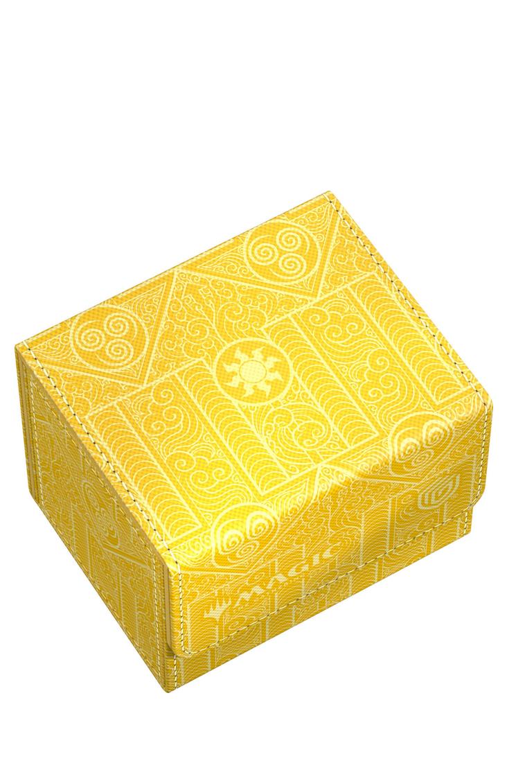 Der Sidewinder 100+ aus widerstandsfähigem Xenoskin-Material fasst bis zu 100 doppelt gesleevte Karten, die dank eines starken Magnetverschlusses und der schonenden Mikrofaser-Innenseite sicher in der Deckbox aufgehoben sind. Die hochwertige Xenoskin-Oberfläche des Sidewinders ist vollfarbig mit offiziell lizenzierten Artworks aus dem Magic: The Gathering | Avatar: The Last Airbender-Set bedruckt.