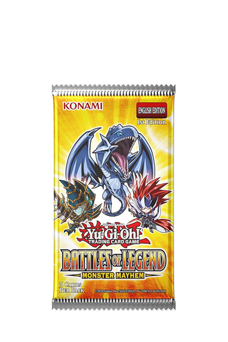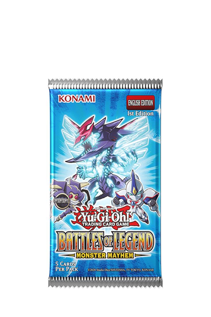 Jedes 5-Karten-Pack von Battles of Legend: Monster Mayhem enthält: